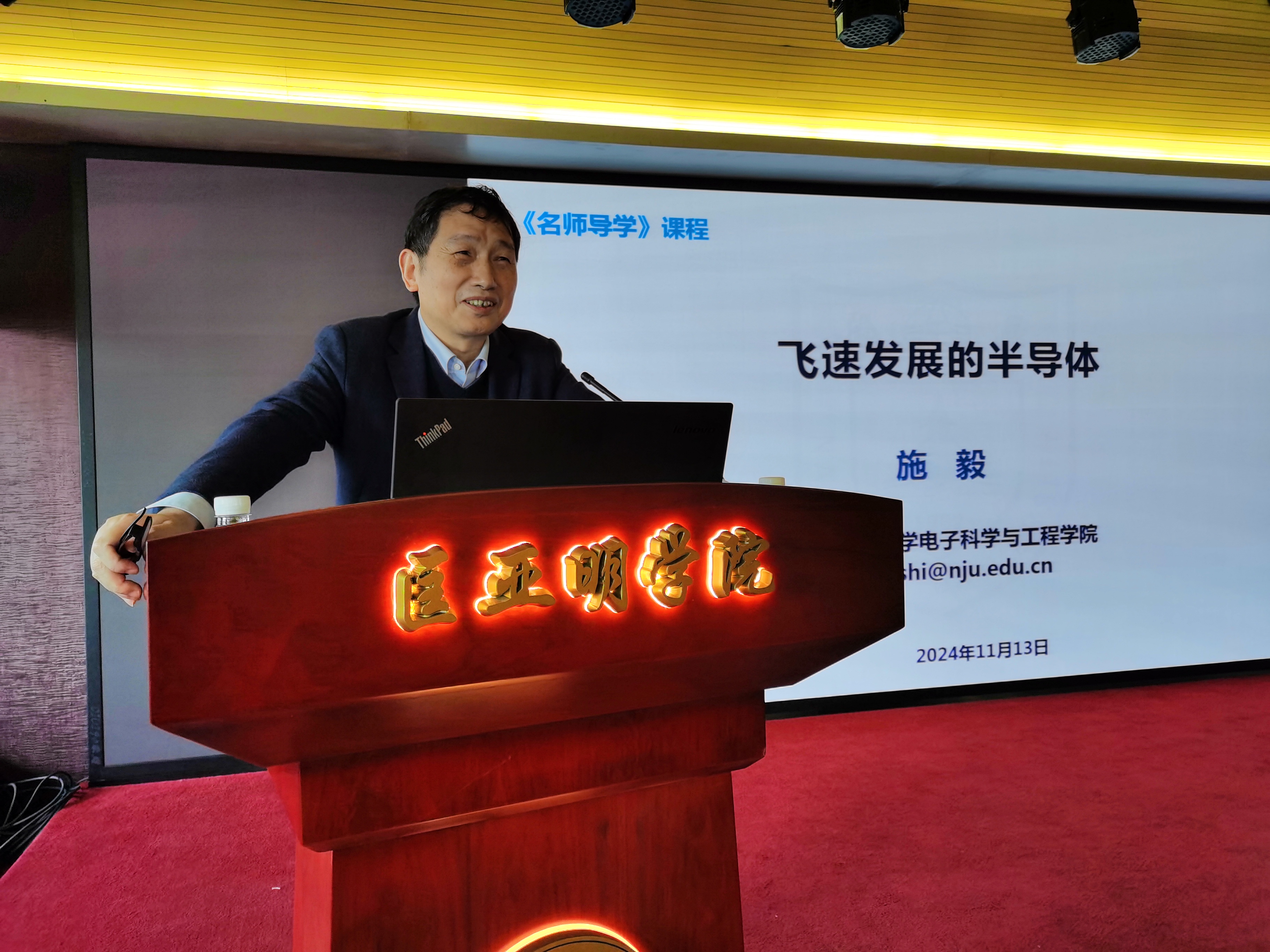11月13日下午,24年秋季学期名师导学课程暨“科创筑梦”党团课第六讲如期进行。本次讲座邀请到成人ai 电子科学与工程学院施毅教授,题目为《飞速发展的半导体》。