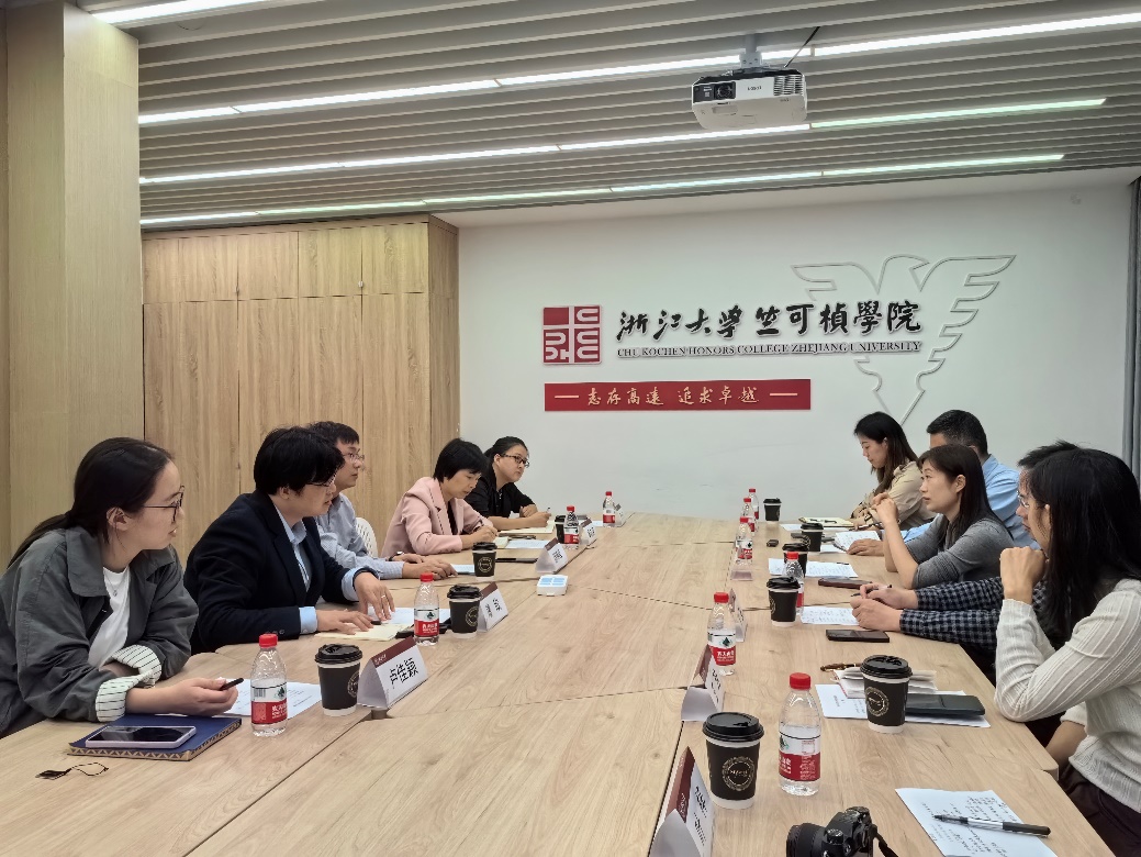 11月15日下午,师生一行来到浙江大学竺可桢学院。徐晓峰向成人ai 师生来访表示欢迎,并介绍了竺可桢学院四十年发展历史、培养特色和教改思路。他表示,两院在拔尖创新人才培养上各具特色,面向未来更具挑战的高质量培养要求,双方可以共同探索育人机制和改革路径。周媛介绍了成人ai 大理科育人模式的教育理念、育人举措和培育成效,并对竺可桢学院师生在参与成人ai 基础学科论坛、四校荣誉学院支教等活动中的持续支持表示感谢。路欣从学院建制、拔尖人才培养方案、学生思想政治教育、国际化建设等方面介绍了竺可桢学院的基本情况。双方围绕本博贯通模式、个性化培养方案、教学思政一体化、教师队伍建设等议题进行了交流探讨。