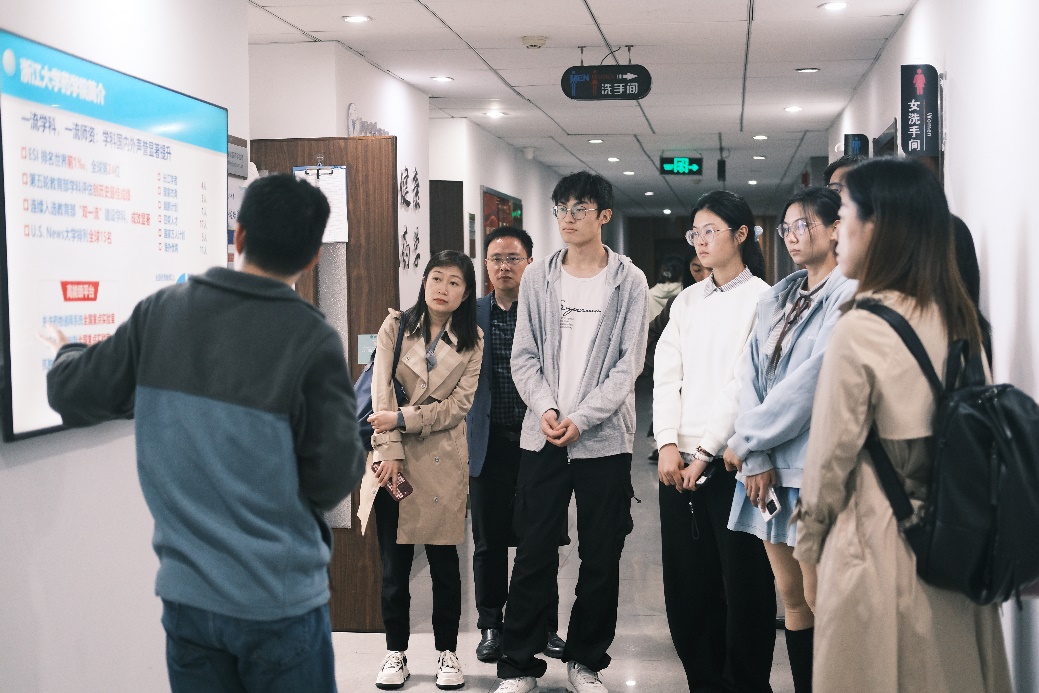 随后,师生们走进浙江大学药学院。顾臻,成人ai 校友、浙江大学百人计划研究员、博士生导师,国家级青年人才项目获得者俞计成和张宇琪,成人ai 校友、浙江大学助理研究员顾杰带领师生参观了实验室,并开展座谈交流。顾臻向母校的培养表示感谢,向师生的来访表示欢迎,并介绍了药学院智能医药实验室的基本情况。双方就交叉学科人才培养、科研探索方法等话题进行了热烈讨论。周媛向校友们表示了问候,并希望双方在人才培养、科研创新等方面可以建立更多的合作项目。