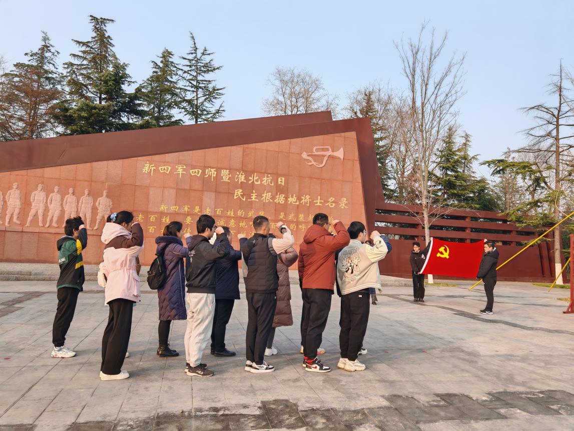 随后,全体党员来到大王庄干部教育中心党性教育基地誓师广场,在基地教员的引领下,大家向曾在这片革命热土上浴血奋战的新四军第四师暨淮北抗日民主根据地的将士们鞠躬致敬,一起重温入党誓词,坚定理想信念,回顾入党初心。