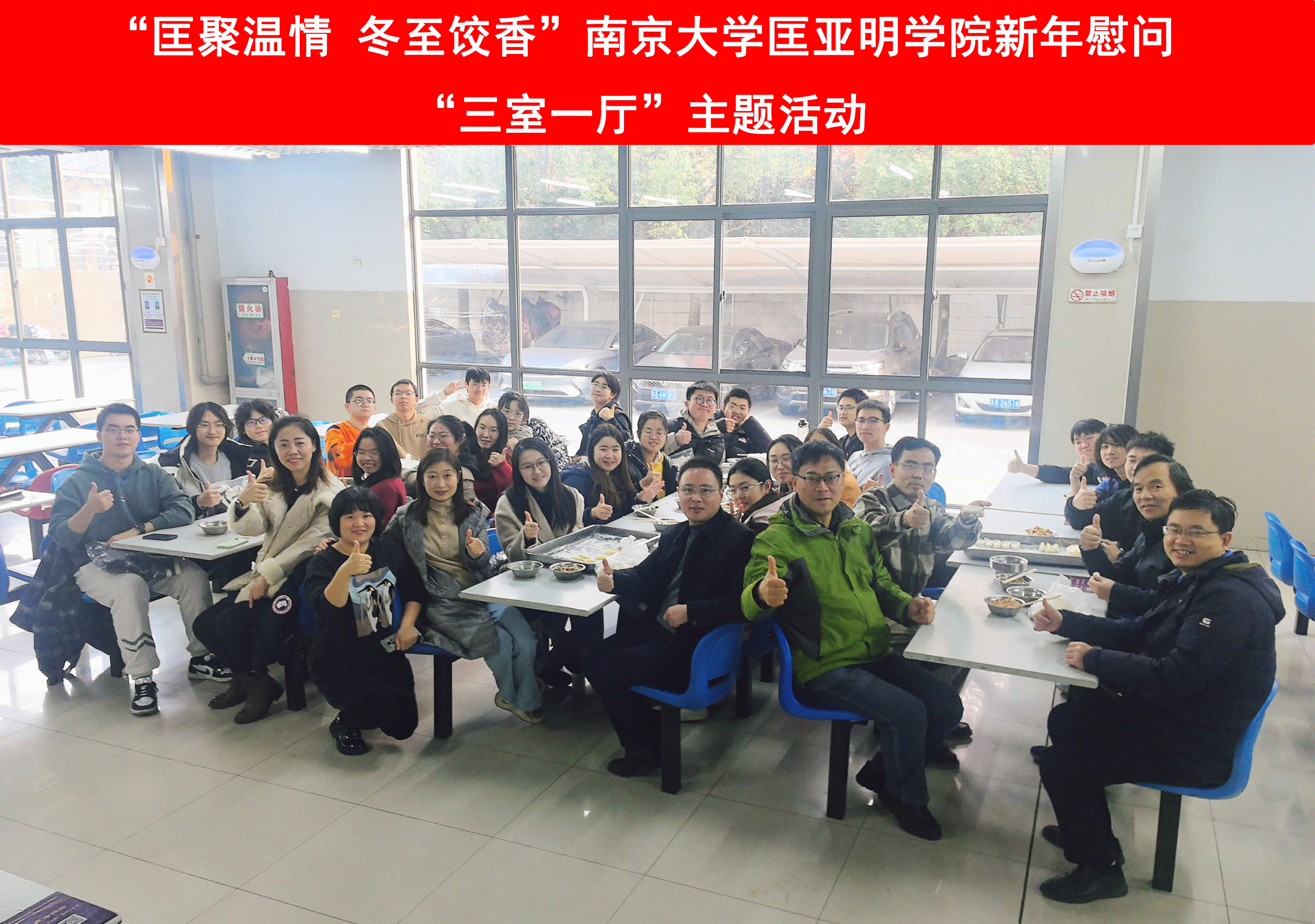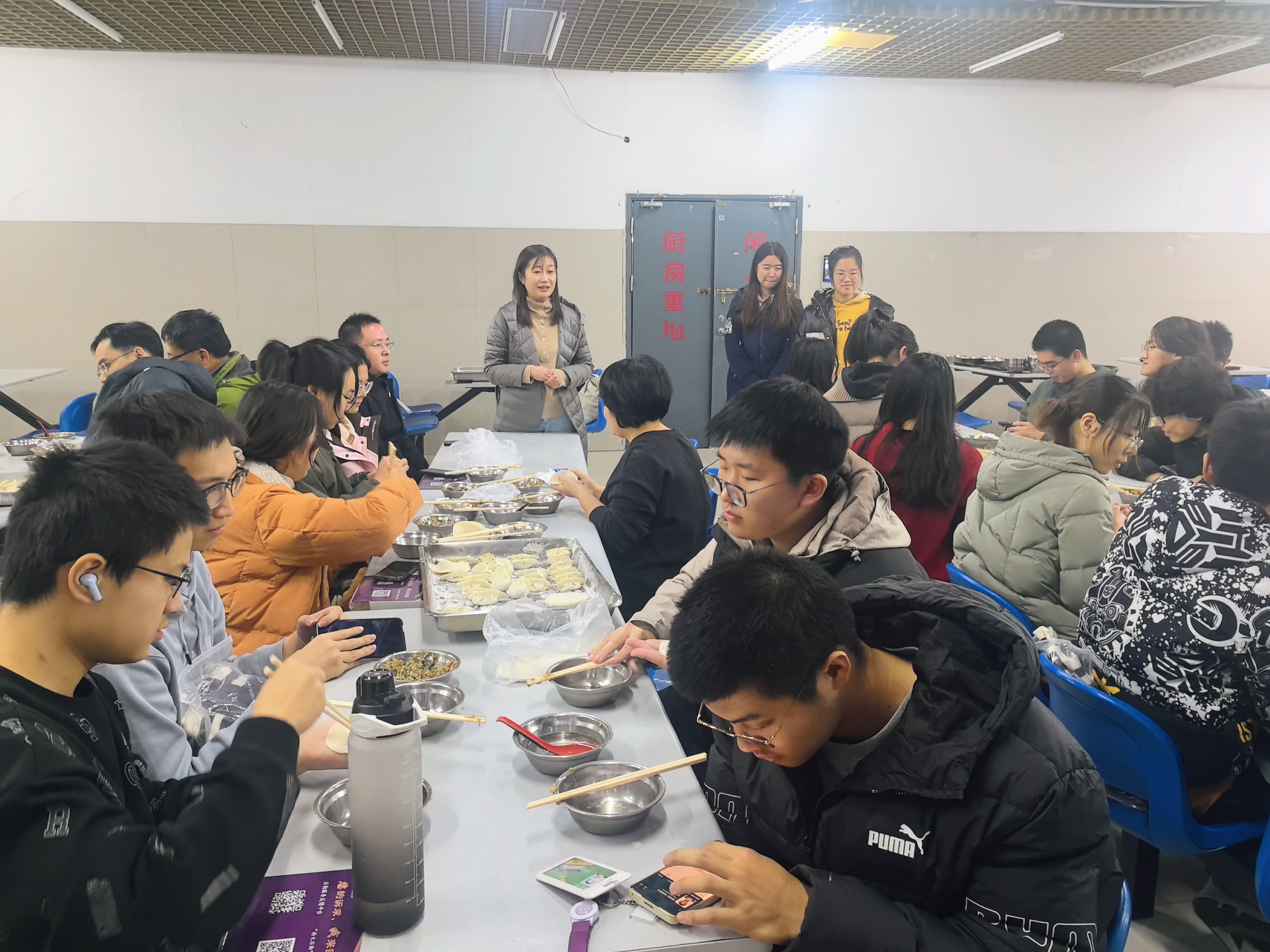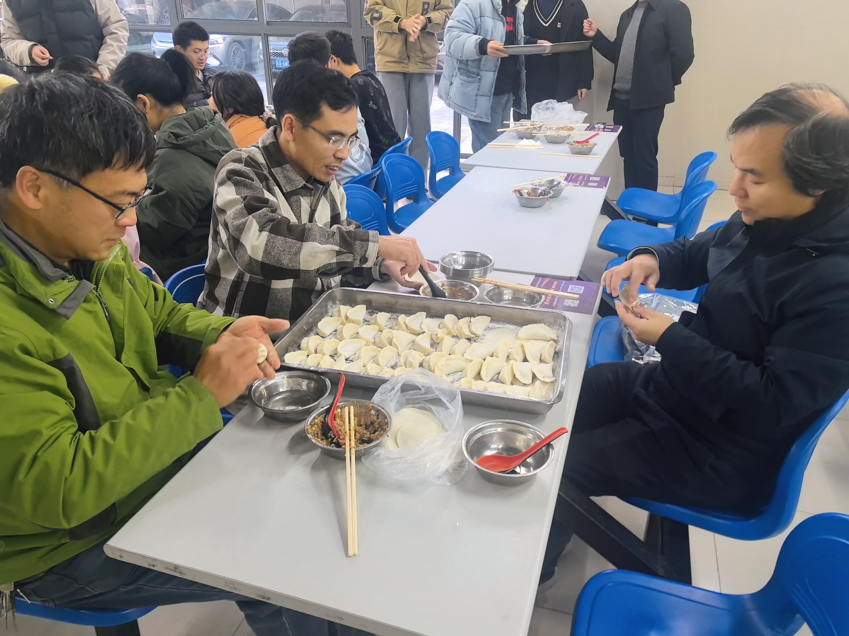 冬至已至,温情常在。为提高学生们对传统文化的传承意识,弘扬传统饮食文化,缓解期末学业压力,增进师生情谊,12月20日,成人ai 在仙林校区四食堂开展“匡聚温情 冬至饺香”新年慰问“三室一厅”主题活动。学院党委书记周媛,党委副书记周安,学业导师代表江伟,班主任范红军、吴盛俊、胡晶磊,院长助理邹大维,党委秘书司林敏,本科生院兼职辅导员许梦溪,辅导员赵玉倩、陈丹及同学们共同参加活动。