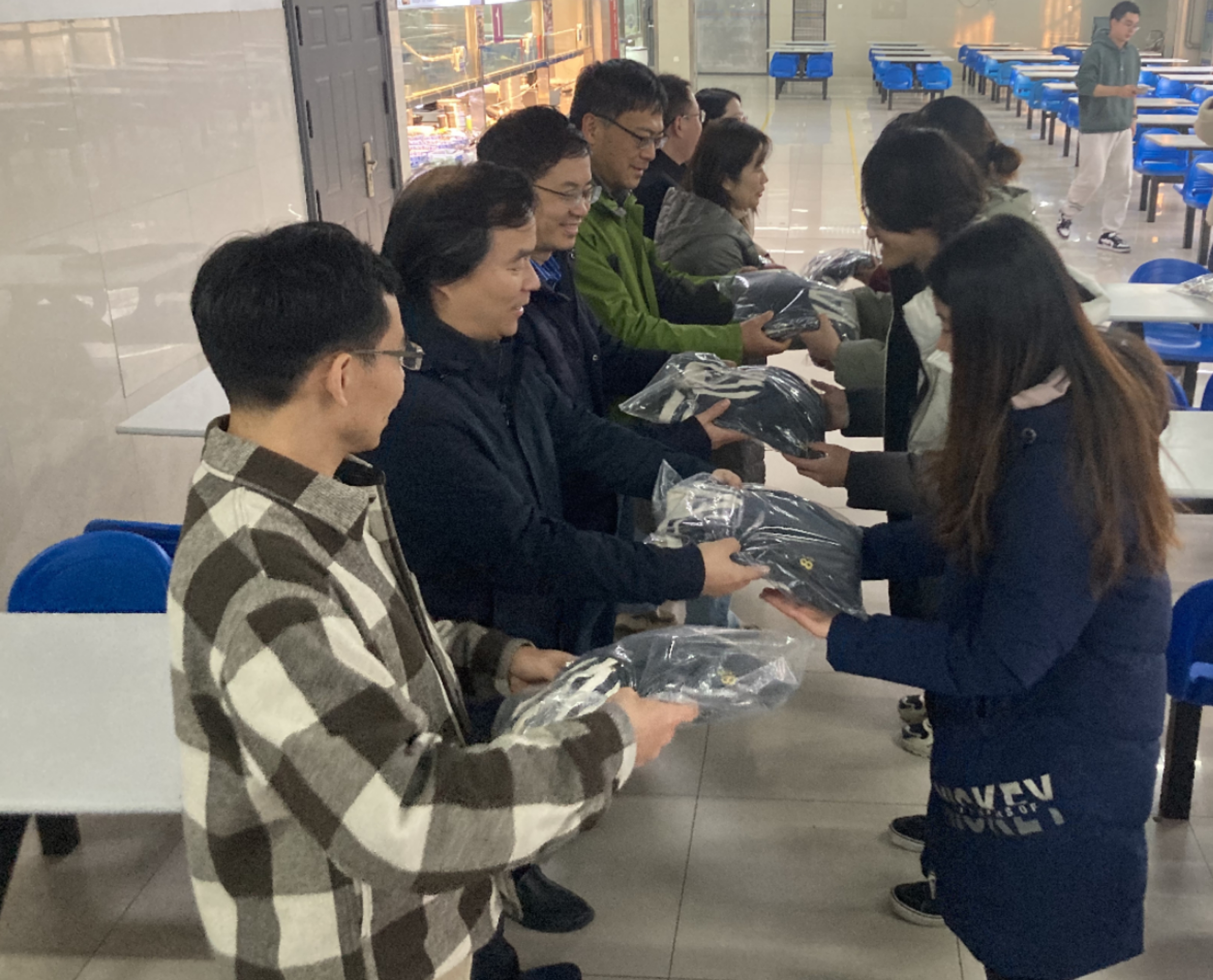 最后,周媛、周安同班主任、学业导师、辅导员一起为同学们发放了由学院精心设计的院服,同时也对郑钢院友的捐赠表示感谢,鼓励大家多注意劳逸结合,开心学习,快乐生活。同学们深深感受到了来自学院的关怀与温暖,他们纷纷表示新的一年将继续携手共进,更加珍惜匡院宝贵的大理科平台与学习资源,共同书写匡院人的美好篇章!