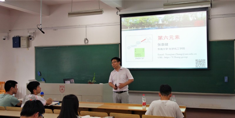 7月10日下午,东南大学张袁健教授在择善楼为成人ai 的同学们做了一场有关第六元素的讲座。张袁健教授本科就读于成人ai ,曾获中国科学院优秀博士学位论文奖,在国际著名期刊发表多篇高水平论文,并入选中央组织部第四批。张教授的研究领域之一为富碳材料的设计、制备和功能化,因此本次讲座他主要介绍了第六元素——碳的相关研究成果以及其化学原理。