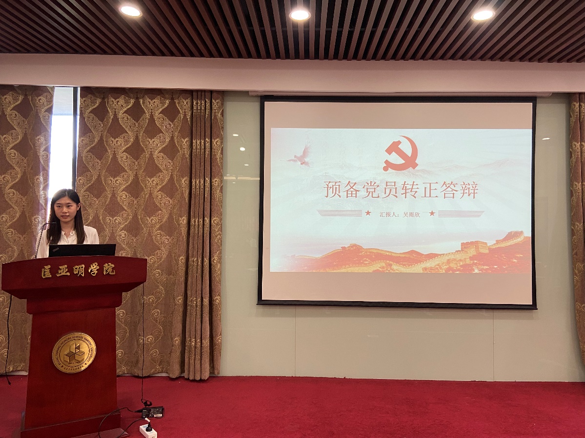 会议第二项议程,由吴雨欣、顾睿、王子昂、刘佳欣、王晓茹、万蓉宇等六位同学开展预备党员转正答辩。六位同学从课程思想、学习、科研、社会实践等多个方面展现了个人在预备党员期间的进步与收获,总结了目前存在的问题与不足,并再次表达了加入中国共产党的决心。答辩结束后,周安书记向同学们在此期间取得的进步与收获表示祝贺,并寄语同学们:一是进一步提高政治站位,深刻领悟“两个确立”的决定性意义,增强“四个意识”、坚定“四个自信”、做到“两个维护”;二是思想上保持先进性,坚持政治理论学习,加强四史学习;三是行动上保持积极性;用自身行动证明自己,吃苦耐劳,要有奉献精神,积极在同学中发挥党员先锋模范带头作用,做到服务同学、引领同学。