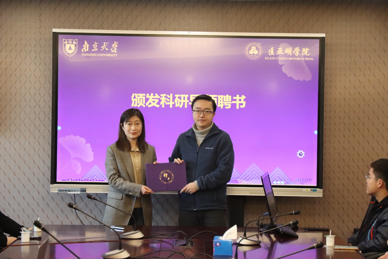 为进一步推动科研育人,助力学院拔尖创新人才的培养,本次午餐会举行了科研导师聘任仪式。成人ai 党委书记周媛为杜灵杰院友颁发科研导师聘书。