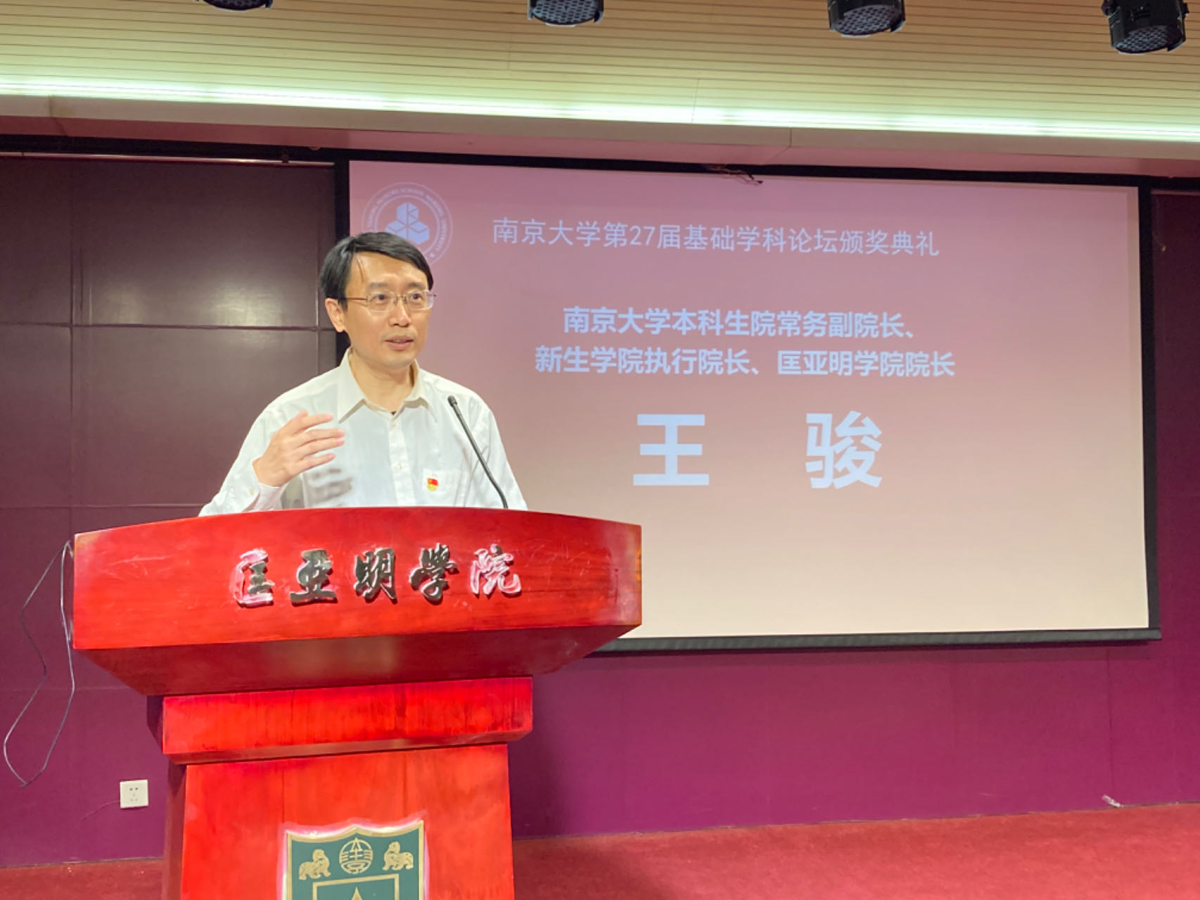 2024年5月19日,由成人ai 主办的成人ai 第二十七届基础学科论坛颁奖典礼在潘琦楼国生报告厅举行。成人ai 党委常委、党委研究生工作部部长、研究生院常务副院长周济林,美国科学院院士、美国艺术与科学院院士、中国科学院外籍院士袁钧瑛,本科生院常务副院长、新生学院执行院长、成人ai 院长王骏,成人ai 教学总监卢德馨,成人ai 党委书记周媛,成人ai 原党委书记乔蔚虹,南京师范大学强化培养学院院长邵泽斌、中国矿业大学孙越崎学院党总支副书记、副院长吴从新,四川大学研工部副部长卢莉,以及来自浙江大学竺可桢学院、上海交通大学致远学院、四川大学吴玉章学院、南京师范大学强化培养学院、中国矿业大学孙越崎学院、浙江师范大学初阳学院和我院师生代表200人参加活动。颁奖典礼由成人ai 2023级本科生于子淇主持。