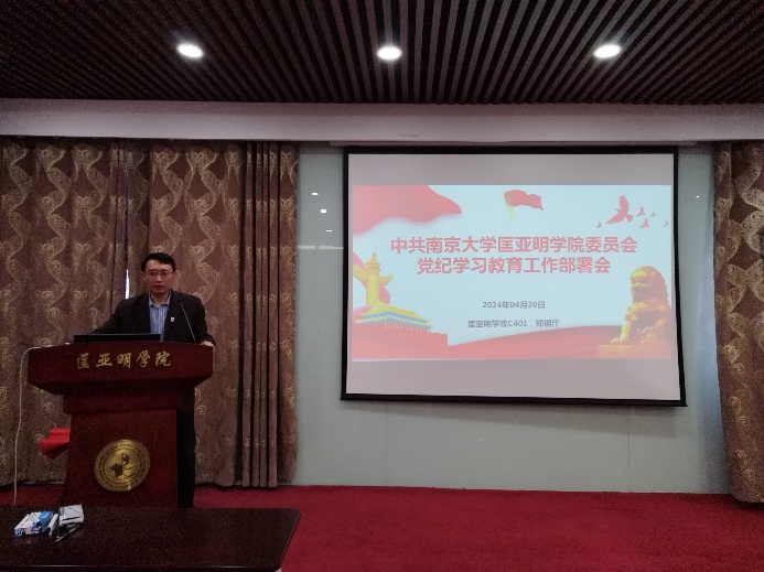 王骏领学了习近平总书记关于党纪学习教育的重要讲话和重要指示精神,传达了校党委书记谭铁牛、校长谈哲敏在党纪学习教育部署工作会议上的重要讲话精神。王骏指出学院党委将加强宣传解读、开展专题培训,认真组织2024年度中层以上领导班子民主生活会和党支部组织生活会,确保党纪学习教育入脑、入心、入行。各个党支部要以“学纪知纪明纪守纪,争做奋进行动先锋”为主题,开展形式丰富的主题党日活动,把学习党规党纪与学习习近平新时代中国特色社会主义思想和党的创新理论紧密结合起来,与贯彻落实习近平总书记对成人ai 殷切期待和给我校留学归国青年学者重要回信精神贯通起来。王骏强调开展党纪学习教育是习近平总书记和党中央做出的一项重要决策部署,是今年党建工作的一项非常重要的政治任务。全院师生党员要深刻认识开展党纪学习教育的重大意义,深刻领会开展党纪学习教育是坚定理想信念的必然要求。