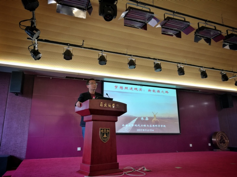 11月15日名师导学课上,来自成人ai 现代工程与应用科学学院的朱嘉教授给同学们介绍了现代能源与材料的背景与发展前景。朱嘉教授毕业于成人ai 物理学院,于美国斯坦福大学获得电子工程系硕士和博士学位,随后在加州大学伯克利分校和劳伦斯伯克利国家实验室从事新能源和环境领域的研究,在新能源和环境领域建树颇丰。讲座由成人ai 副院长葛欣主持。