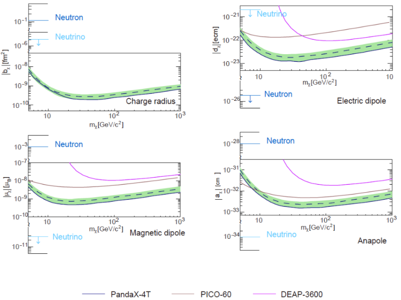 利用PandaX-4T实验数据测量暗物质电磁性质给出的实验上限,其中电荷均方半径(charge radius)性质的结果为国际首个实验上限