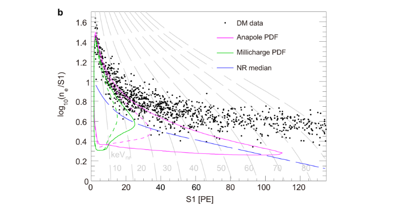 同传统假设中的极短程相互作用不同,如果暗物质具有非零的“亮度”,它们可以通过交换光子同氙原子核产生长程相互作用,呈现出独特的反冲特征。PandaX团队基于前期同美国科学院院士Wick Haxton教授合作实现的有效场方法,把不同种电磁效应转换为不同有效算符核矩阵元的组合,得到了相应的暗物质碰撞率和反冲特征。探测器中主要的本底来源于微量放射性和电子之间的碰撞,它们在S1和S2上的分布和暗物质-原子核的碰撞信号不同。团队通过刻度数据构建了可靠的暗物质信号和本底响应模型,提升了对不同暗物质电磁性质的甄别能力。