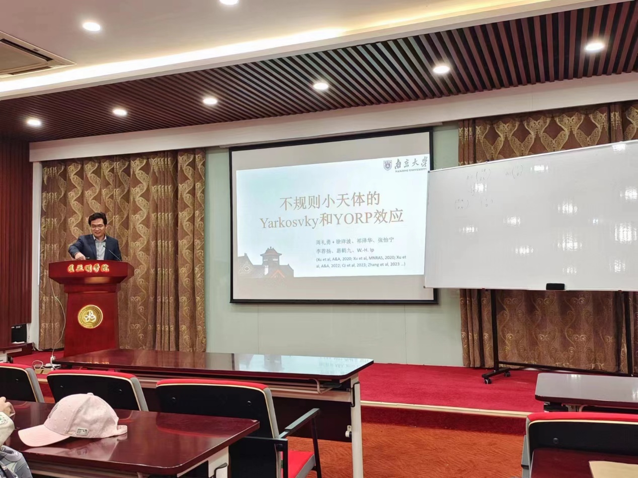 4月27日下午,成人ai 系列学术讲座在郑钢厅如期举行。本次讲座邀请到成人ai 天文与空间科学学院教授、中国天文学会“天体力学与卫星动力学”专业委员会主任、国际天文学联合会Inter A-F分会组织委员,成人ai 院友周礼勇老师做题为“不规则小天体的 Yarkosvky和YORP效应”的专题讲座。本次讲座由成人ai 党委书记、院长王骏主持,成人ai 数理方向的同学们参加了本次讲座和交流。