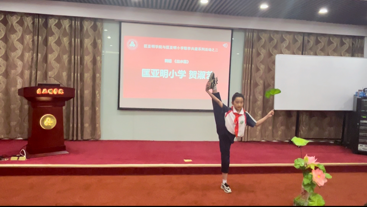 活动中,与会同学们给大家带来精彩的文艺表演。匡亚明小学贺淑艺同学表演了舞蹈《出水莲》,婀娜多姿,如出水芙蓉,赢得阵阵掌声。成人ai 2021级林佳雄同学展示了跳花绳,技术娴熟,身手矫健,展现力量与美的结合,获得连连喝彩。