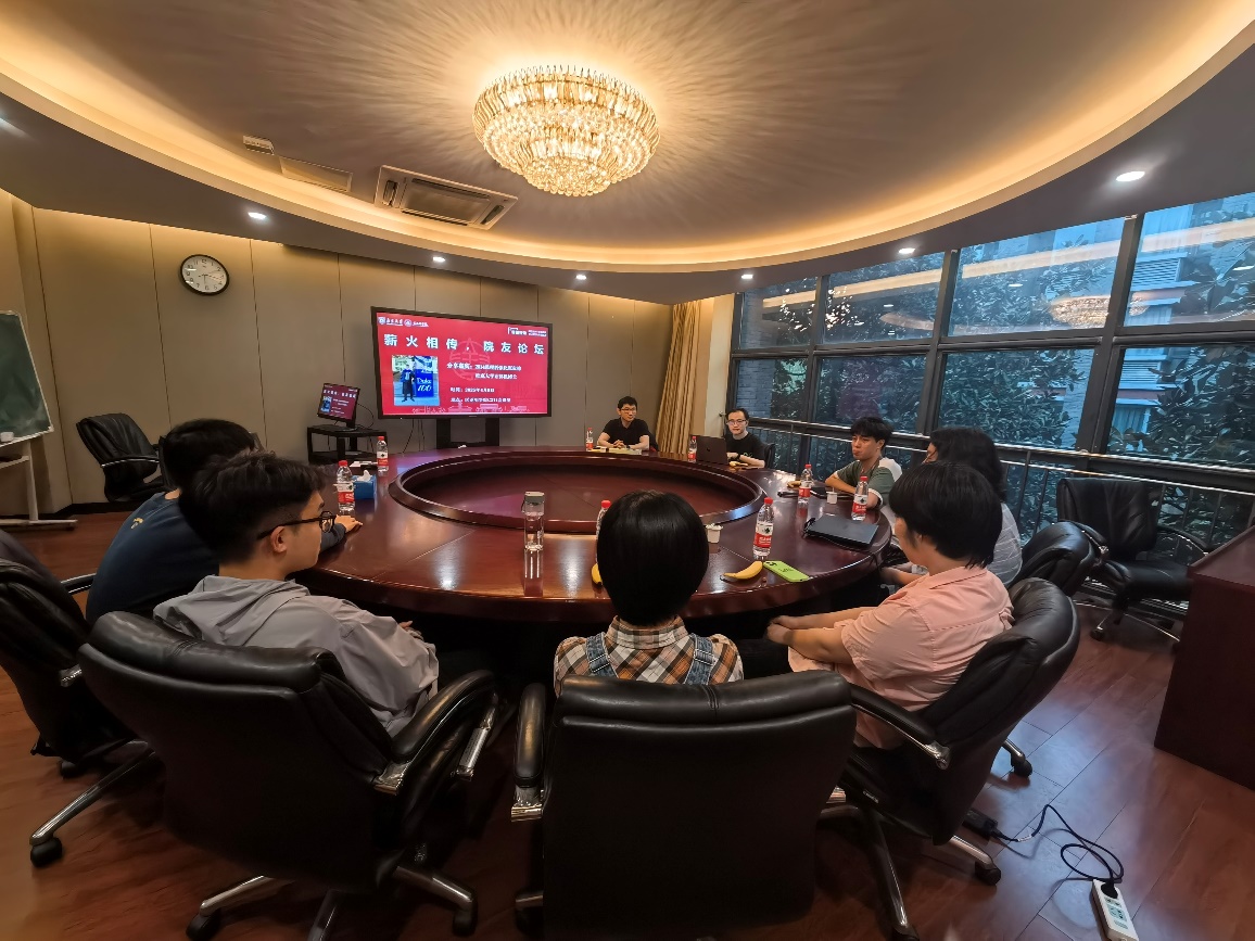 4月8日晚上,成人ai “薪火相传·院友论坛”在院楼C211会议室举行。本次活动邀请成人ai 2014级院友、杜克大学计算机博士、现美国硅谷某顶尖互联网公司就职的袁帅作为分享嘉宾,与计算机、人工智能、物理等专业的同学面对面交流,围绕出国留学、科研训练与职业发展等话题,分享了他的经验与思考。学院党委书记周媛、副书记周安与院友进行了交流,活动由研究生辅导员司林敏老师主持。