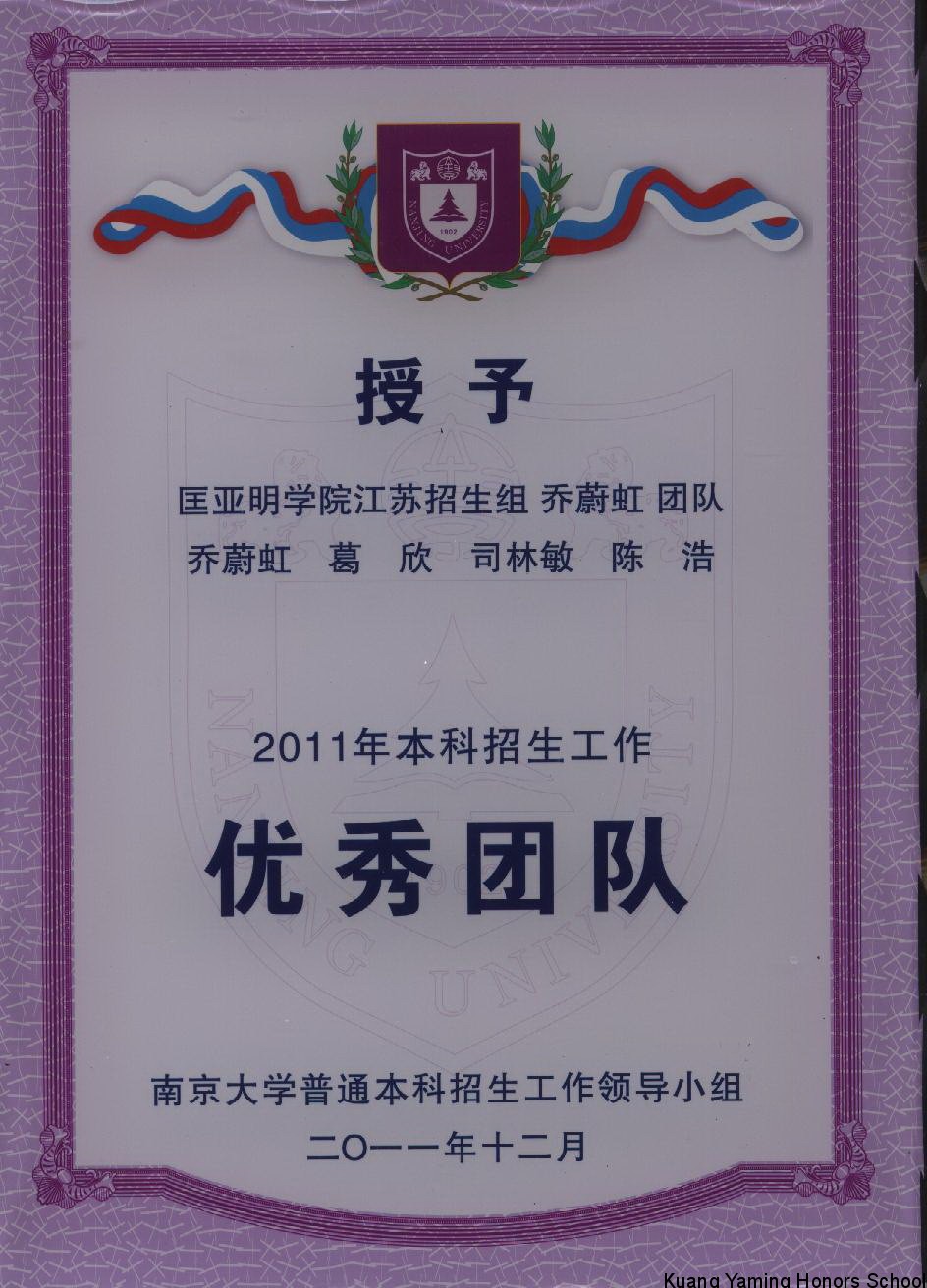 2011年我院获招生工作优秀团队