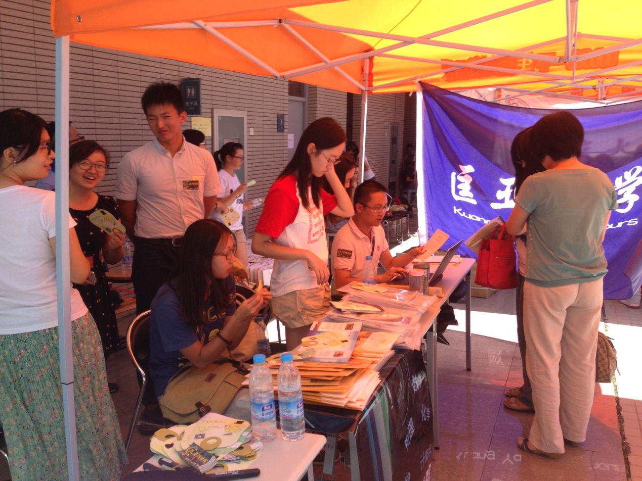 新生报到当天,匡院学生会联合匡院团委,在教学楼平台摆设展台,举行联合迎新活动。从31日下午开始,新生陆续到校报到,匡院学生会认真为新生进行注册登记,并向新生发放了入学报到指南、校园地图、匡院贴标等一系列资料。值得一提的是,匡院学生会还组织新生进行了“迎新拍照”活动,同学们在印有“成人ai ”的海报前留下了一张张活泼可爱的笑脸,大学生活的起点在这里定格。高年级同学负责引领新生办理一系列报到事宜,并对初来乍到的学弟学妹们的困惑和疑问一一作了耐心的解答,为新生提供了诸多帮助。