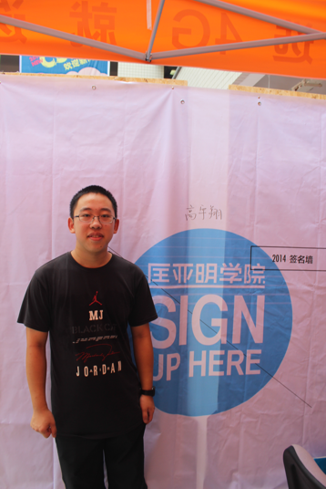 在辅导员司林敏、唐健老师以及匡院团学联众多成员的精心准备下,迎新工作有条不紊:安排校门口引导,保证新生第一时间找到匡院;设置家长休息室,让陪同家长有休息所在;学长前来帮忙,指导新生购买耳机、军训服装、拍摄电子照等;签名墙签名并留影,留下有纪念意义的瞬间(下图为第一个报到的高宇翔同学,在签名墙上留下了第一个名字);学长介绍南大生活,分享生活学习经验……匡院团学联同学尽职尽责,力求迎新工作尽善尽美。