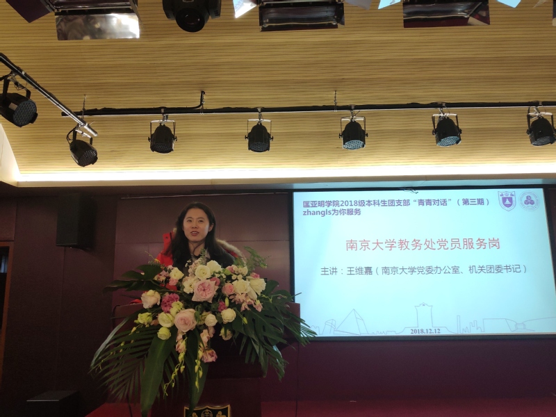 12月12日,成人ai 2018级团支部举行第三次“青青对话”活动,这是继前两次新生入党先导教育之后,第三次开展该项活动。为更好地帮助大一新生完成入学转型,学院团委邀请学校机关各职能部处青年管理者,与2018级青年学生对话。本次“青青对话”活动主题为学校教务处的经典品牌项目“zhangls为你服务”,学院团委邀请教务处朱炼、于天禾、孙闻宇三位年轻老师,从三个不同角度讲解与同学们息息相关的教务教学工作。