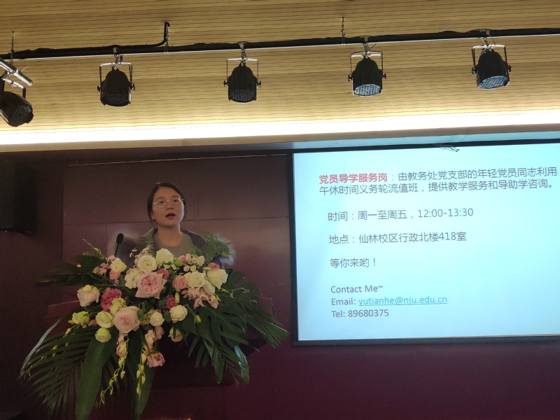 作为前一任教务处支部委员,机关团委书记王维嘉老师也亲临现场,并和于天禾老师一起介绍了教务处党员导学服务岗的工作,让同学们切实感受到了教务处年轻党员的先进性。