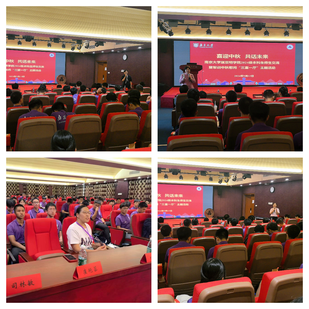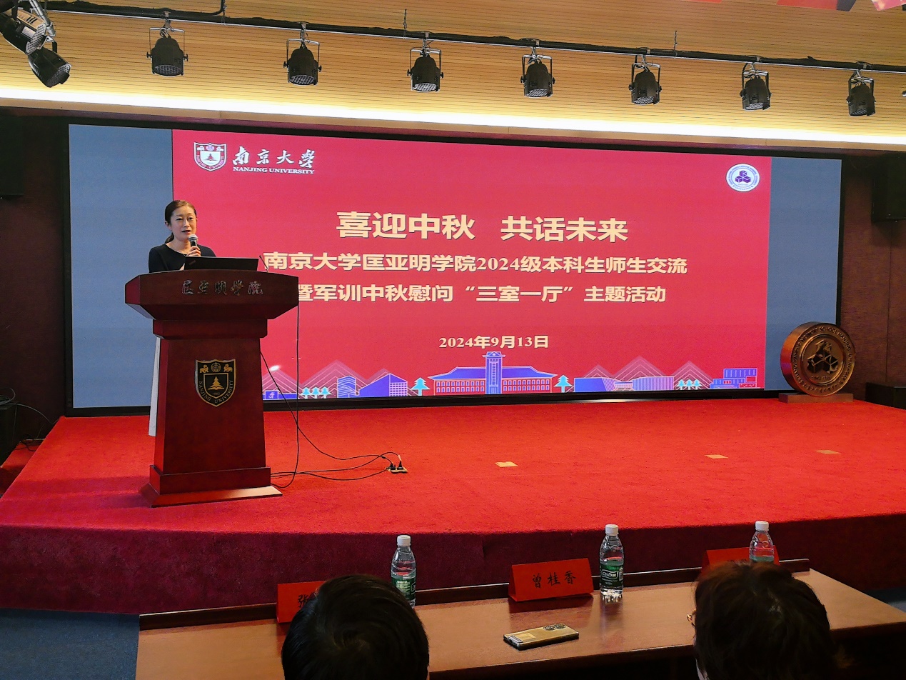 2024年9月13日,“喜迎中秋 共话未来”成人ai 2024级本科生师生交流暨军训中秋慰问“三室一厅”主题活动在潘琦楼国生报告厅圆满举行。成人ai 党委书记周媛、党委副书记周安、副院长董昊、班主任郭亚冲、老师代表以及2024级全体本科生130余人共同参加活动。活动由周安主持。