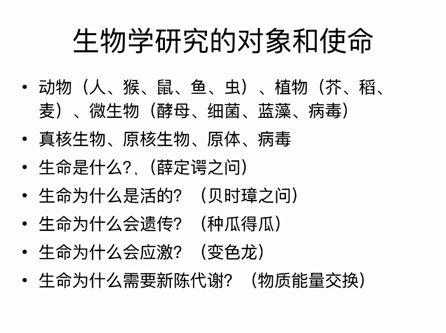 首先,老师从中国荷斯坦牛切入,展现了生命世界的神奇,介绍了生物学研究的对象和使命,生命科学研究的终极问题,生命与非生命的异同以及生命的概念。