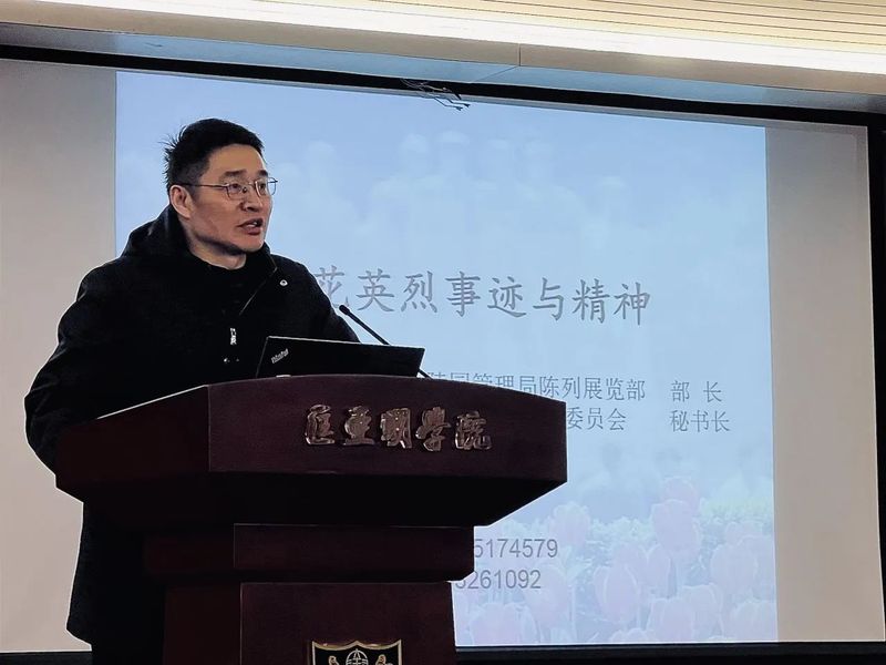为弘扬雨花英烈事迹与精神,传承红色基因,进一步推进馆校合作共建,2024年3月27日下午,成人ai 邀请南京市雨花台烈士陵园管理局陈列展览部部长闻慧斌为成人ai 施滉班同学作了主题为《雨花台烈士及其革命精神》的讲座。讲座由学院党委副书记周安主持,院团委书记司林敏、部分教师代表、学院学生党支部以及学院“施滉班”全体同学参加。