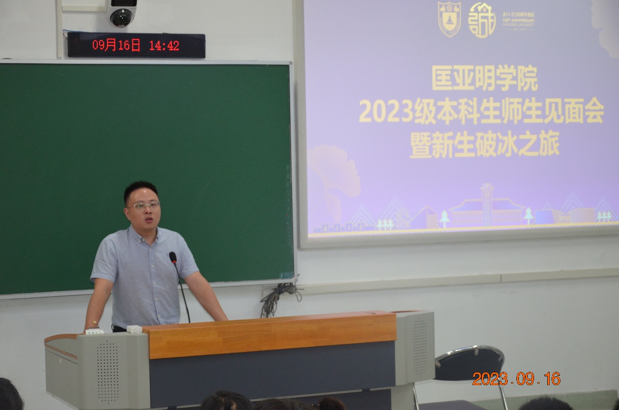 为让2023级匡院新生更快、更好地融入大学生活,明晰在大学中的目标,促进师生间、同学间相互认识、熟悉,成人ai 9月16日下午在鼓楼校区郑钢教学楼举行“2023级本科生师生见面会暨新生破冰之旅”。成人ai 领导、老师们,成人ai 2023级全体新生及学长学姐们齐聚一堂,进行了愉快又深刻的交流。