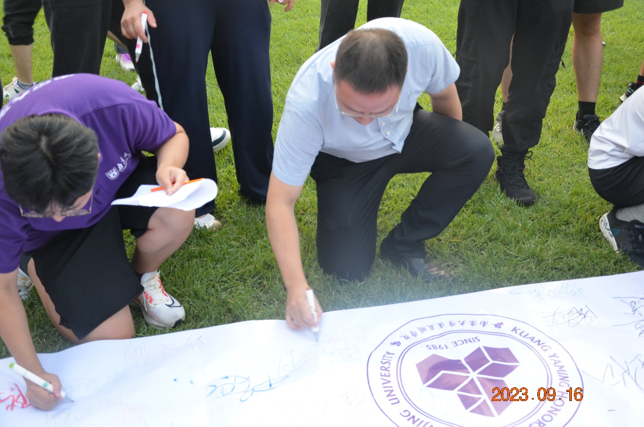 所有老师和同学在印有成人ai 院徽的长幅上签下自己的名字,这张由所有23级匡院成员名字组成的全家福也就此张贴在院楼中,标志着新一届匡院学子的扬帆远航