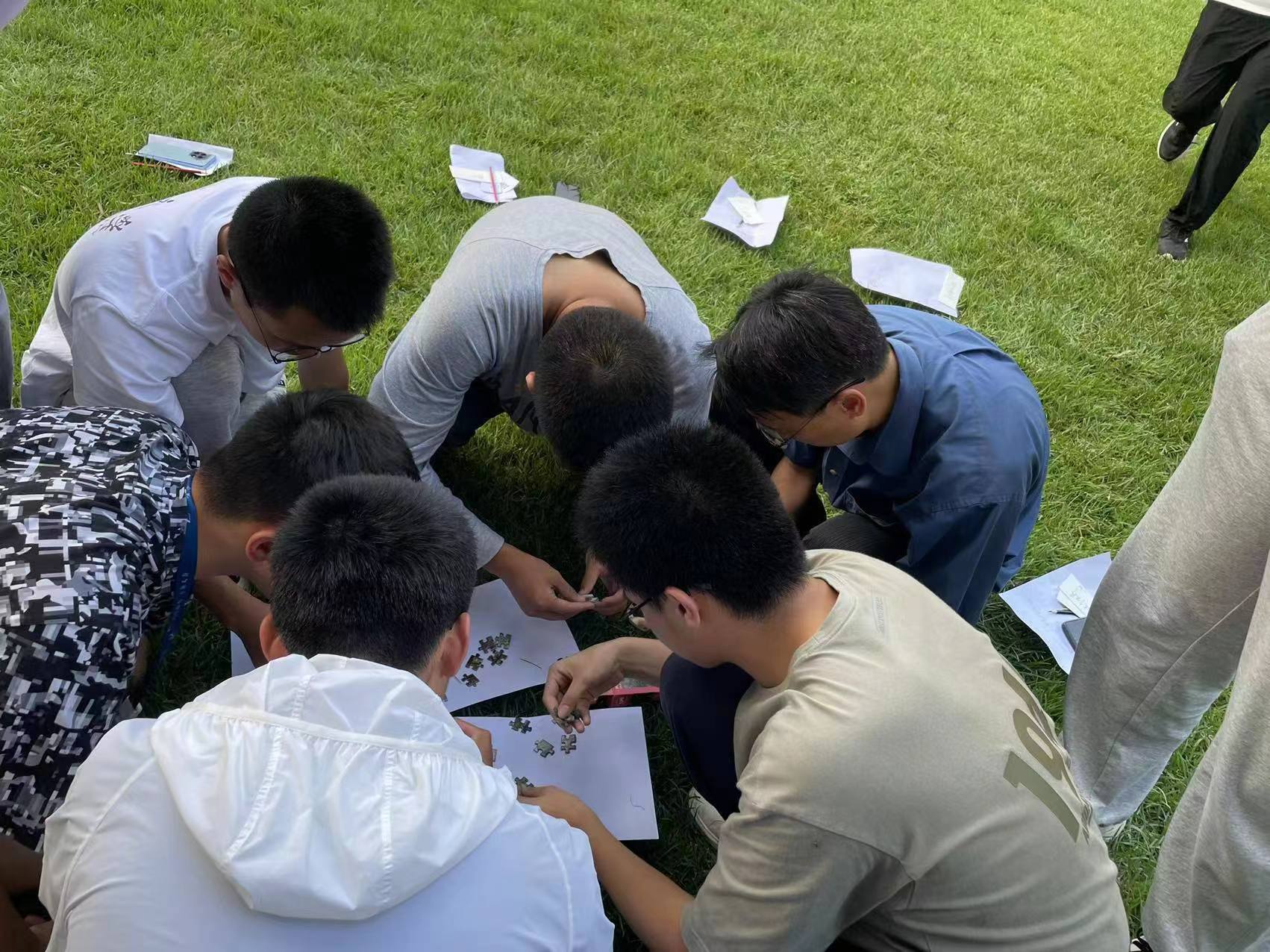 所有新生与老师分为数组团坐在北大楼前草坪,沐浴在温暖的阳光下,,轮流用两句真话和一句假话描述自己,其他的同学和老师猜测哪一句是假话,大家各方面的描述在增添乐趣、活跃气氛的同时也增进了彼此间的了解、拉近了彼此的距离。随后大家经过一轮轮的增加细节,给身边的每个人都画了一幅速写作为赠与彼此的礼物。