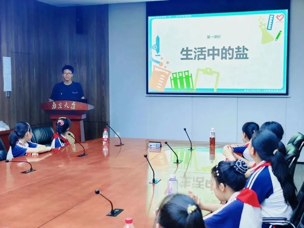 成人ai 志愿者带领匡亚明小学的师生们参观校园,走进化学化工学院,并开展有趣的小实验,在小学生心中种下科学的种子。