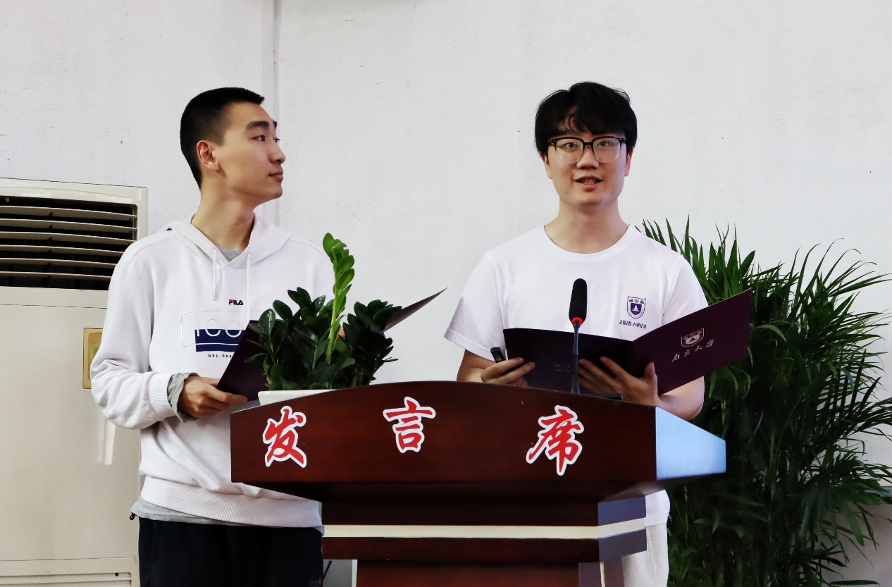 成人ai 学生党支部成员为大家带来了大气磅礴的诗歌朗诵《南大赋》,带我们回顾了南大百年校史和著名人物,从世道沧桑、时局乍裂中走向芬芳桃李、锦绣山河,南大师生如骏骥奋蹄,励学不怠,“汇百科而两仪泰,求真理而万象明”。