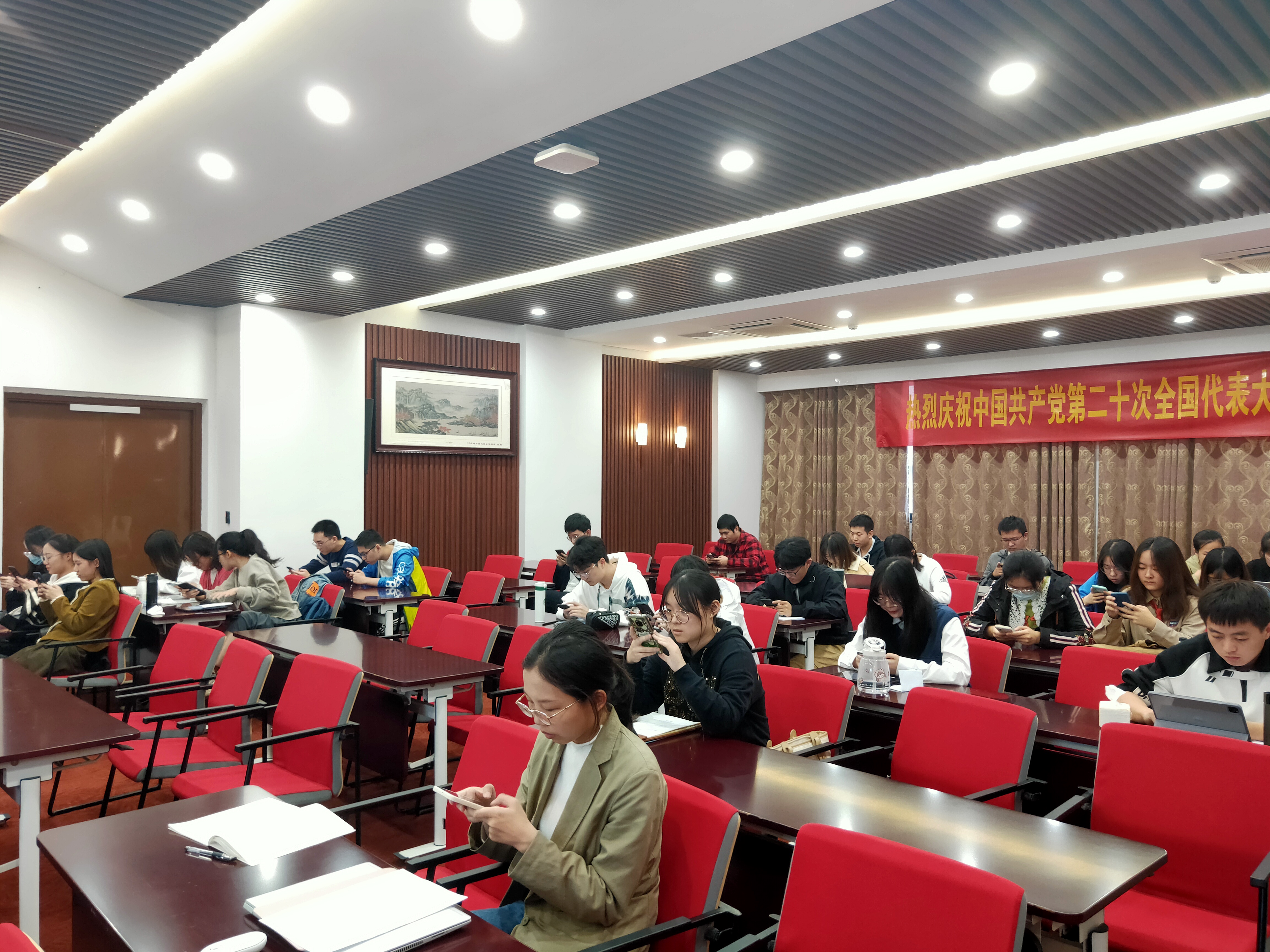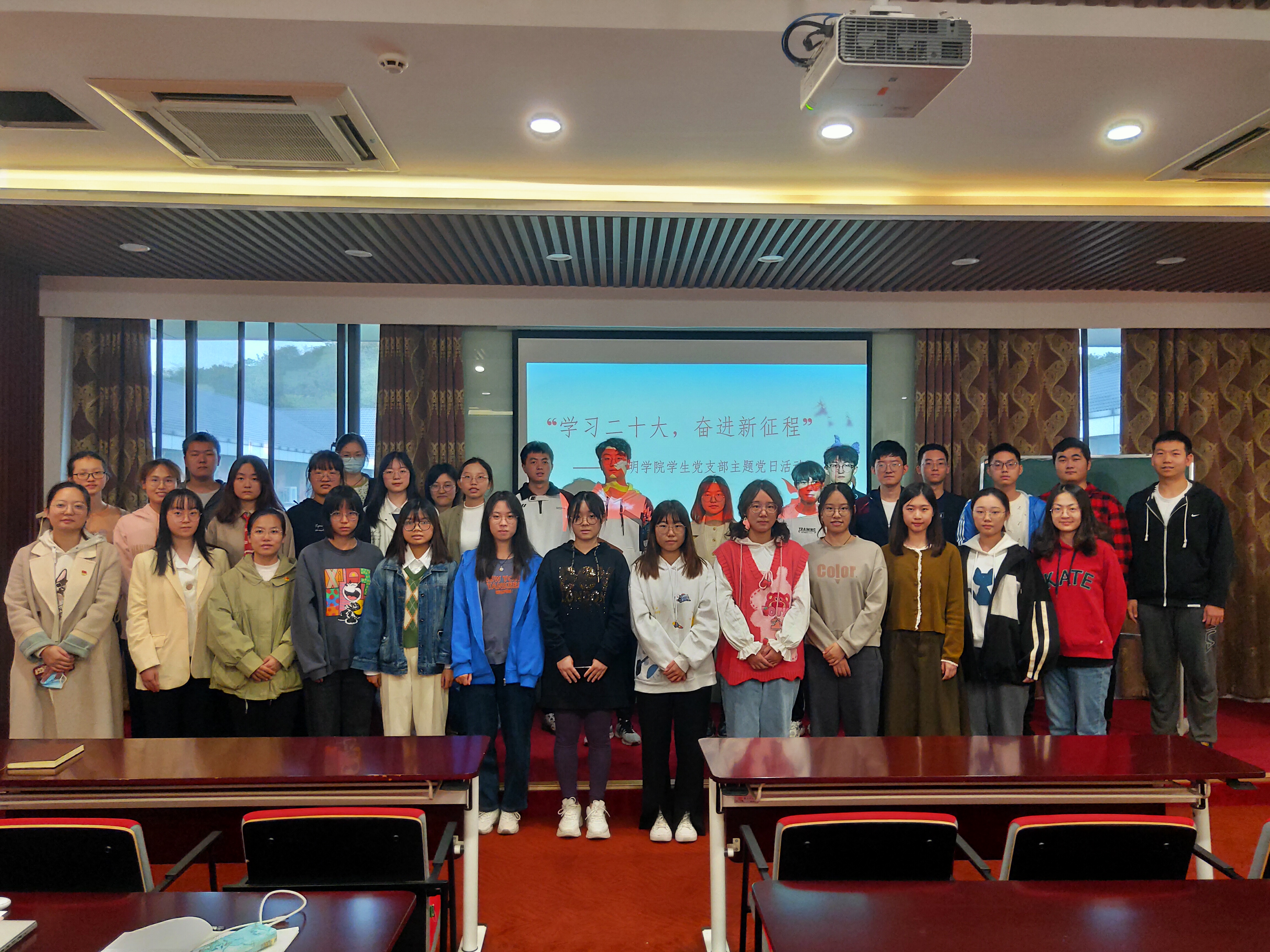 为庆祝党的二十大胜利召开,深入学习贯彻落实二十大精神,成人ai 学生党支部开展了“学习二十大,奋进新征程”主题党日活动。引导全体党员要把新时代中国特色社会主义思想的精神实质和丰富内涵内化于心,外化于行,坚定不移跟党走,牢记使命,忠诚担当。活动由学生党支部书记朱莉莉老师主持。